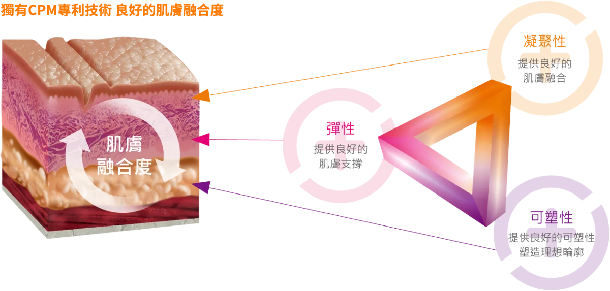 不用擔心,德國BELOTERO®透明質酸彩虹針專利CPM (Cohesive Polydensified Matrix) 技術,能夠提升透明質酸內聚力,能與肌膚組織有良好融合, 讓透明質酸均勻分佈,減少結塊問題,減低出現”毛毛蟲”及藍光現象,自然又免尷尬!