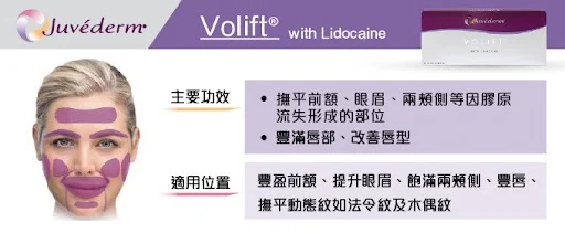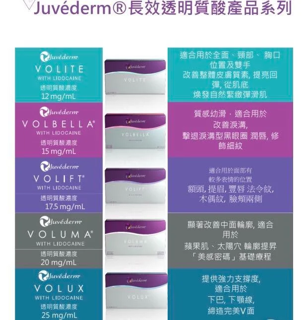 隨住年紀漸長,面部肌膚老化及膠原流失,造成太陽穴凹陷、蘋果肌扁平、虎紋木偶紋出現,個樣望落去十分顯老。想捉住年輕,keep住自己望落去後生5-10年,Juvederm透明質酸產品系列,可以解決你嘅煩惱。
