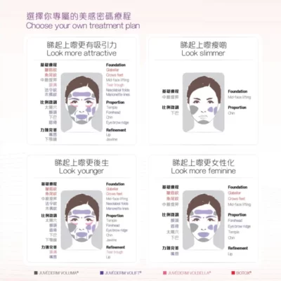 透過 Juvederm 最新美感密碼療程,達到全面協調效果,立即消除皺紋、優化臉部輪廓、提升鬆弛面頰、改善膚質及回復豐盈飽滿肌膚,助你重拾年輕活力。