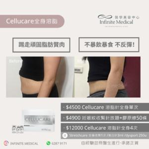 Stretchcare比較針對緊膚作用,皮膚問題例如皺紋等也很好,跟而Cellucare溶脂針是很好的配搭,因為而Cellucare減少脂肪體積,Stretchcare就有緊膚作用,因而有更明顯的提昇效果🙌🏻
