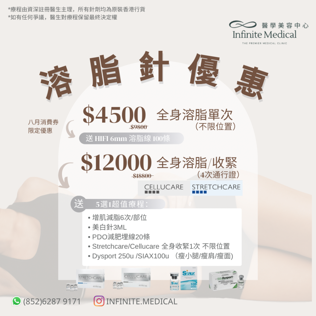無論係面上、下巴定係身體及四肢,Cellucare溶脂針都可有效處理。