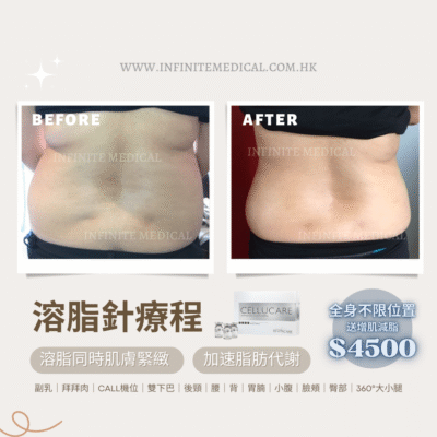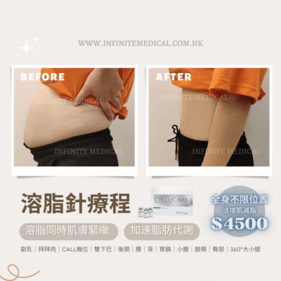 非入侵性溶脂新技術,效果之佳真的可超越一般減肥機!而現時冷凍溶脂療程也於多個先進國家使用中,包括香港,韓國,日本及英國。Beauty Factory冷凍溶脂最大優勢是針對目標位置的脂肪細胞,而不會對周邊的皮膚組織造成影響。根據研究指出,冷凍溶脂可減少高達27%脂肪數量,若跟Cellucare溶脂針同時並用,效果更顯著。